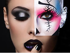 This program teaches students the essential skills needed to work in the fashion and beauty industries as well as techniques needed for film, television and theatre. Students are taught to create glamour, period and character looks without the use of sculptures, molds or other prosthetics. This class is ideal for those looking to exercise creativity by creating elaborate styles using only makeup and their imaginations.