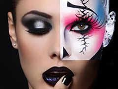 This program teaches students the essential skills needed to work in the fashion and beauty industries as well as techniques needed for film, television and theatre. Students are taught to create glamour, period and character looks without the use of sculptures, molds or other prosthetics. This class is ideal for those looking to exercise creativity by creating elaborate styles using only makeup and their imaginations.