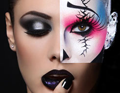 This program teaches students the essential skills needed to work in the fashion and beauty industries as well as techniques needed for film, television and theatre. Students are taught to create glamour, period and character looks without the use of sculptures, molds or other prosthetics. This class is ideal for those looking to exercise creativity by creating elaborate styles using only makeup and their imaginations.